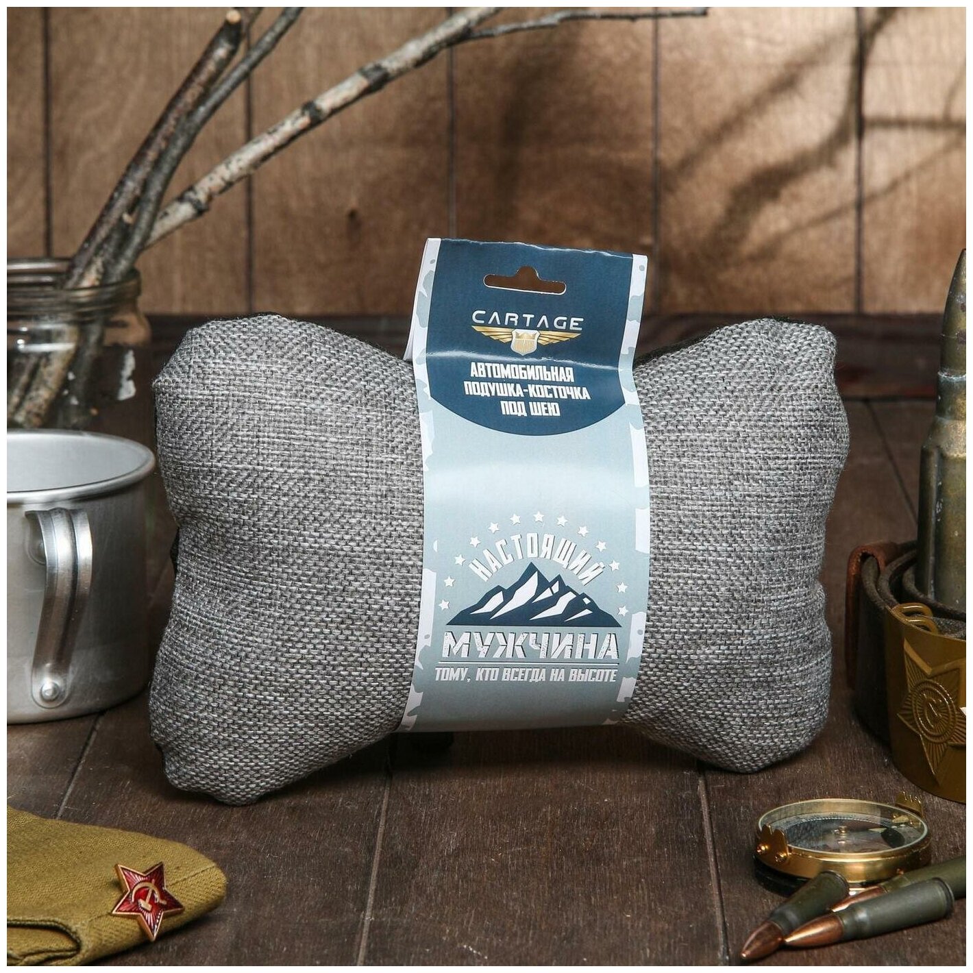 Car gift pillow 18x26cm, linen, gray