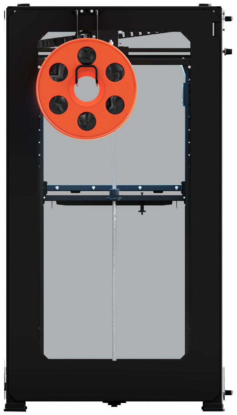 7 Hiwin rail guides, one extruder, two step screws, color indication of operating modes, the ability to install coils of any size on the right or left side, easy-to-change hot end printing module.