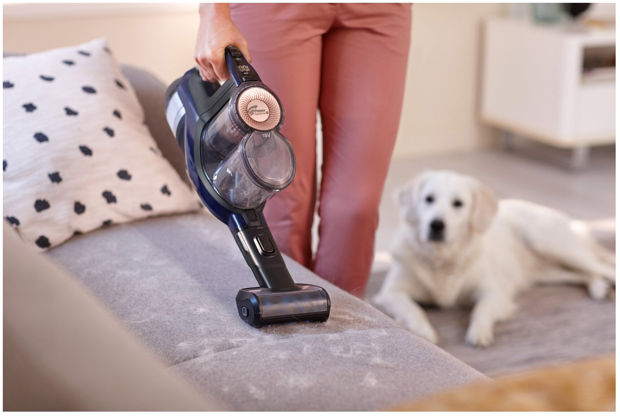 Voltage 18 V; 3 power levels 14/20/45 minutes of operation; indication of speed and charge level; LED light on the main brush; electric brush name: SpeedPro Max, Turbo