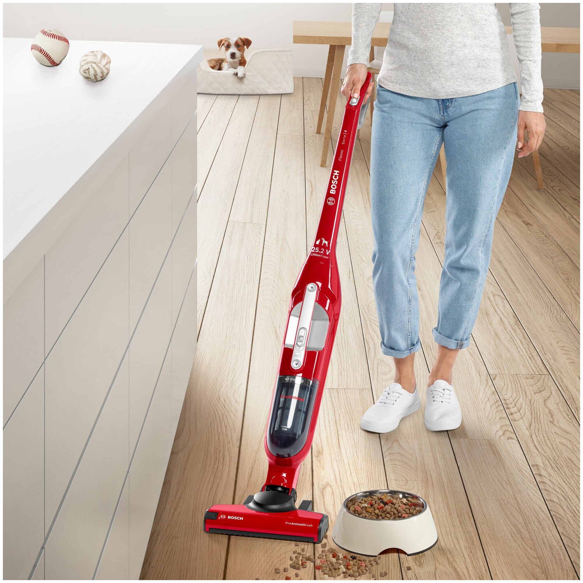 Built-in accessory compartment, 2 power levels, EasyClean system: easy cleaning of the brush and container, battery status indicator, voltage 25.2 V; designed for pet owners; number of batteries