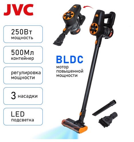 For home JVC JH-VS125 Vertical Wireless 2 in 1 with BLDC motor 3 nozzles, 2 power levels, HEPA filter, 250W