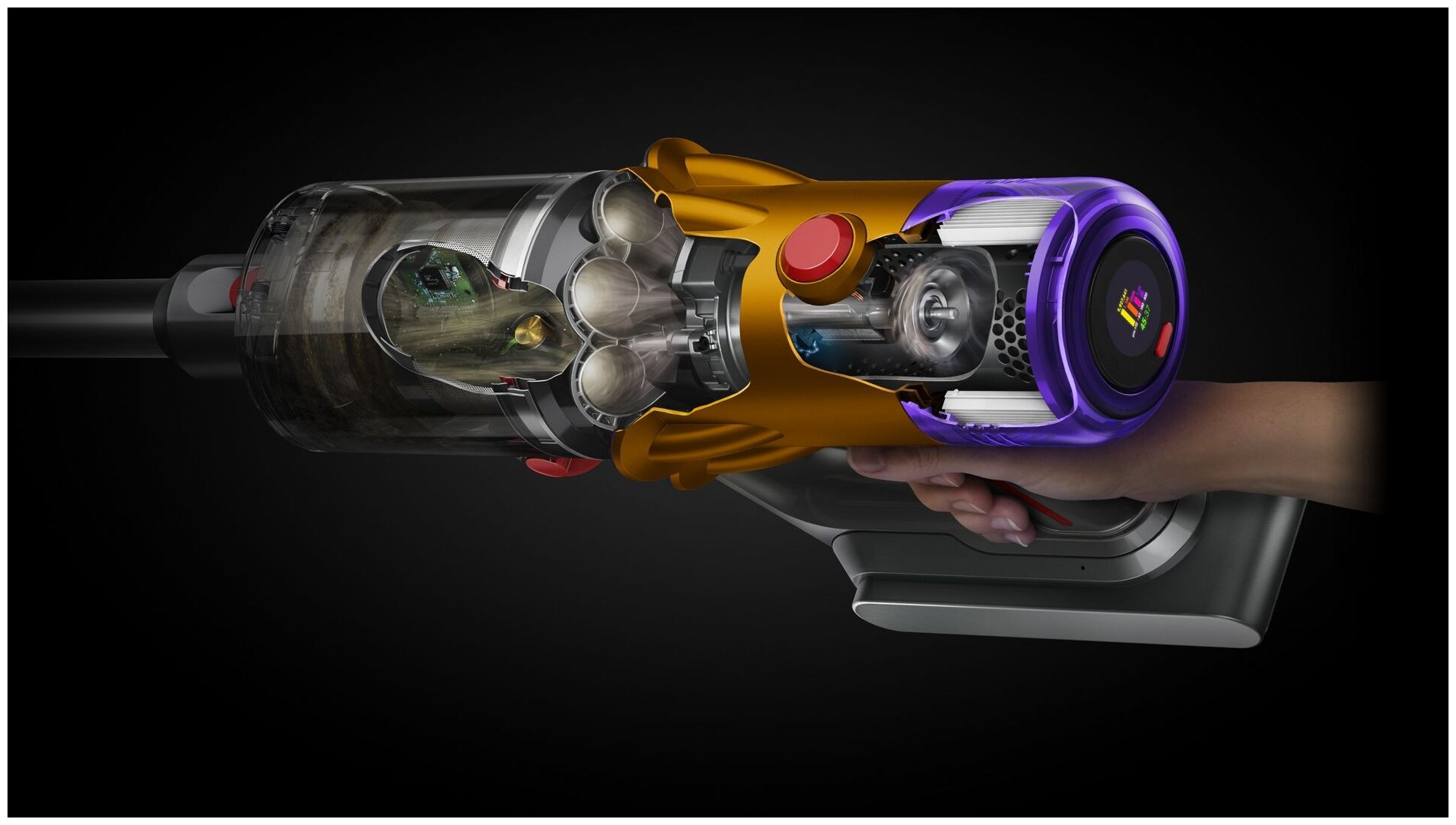 In a set: fastening for nozzles on a pipe; three suction power modes: turbo - 240 W, medium - 47 W, eco - 26 W; battery operating voltage: 25.2 V; pipe length: 655.18 mm