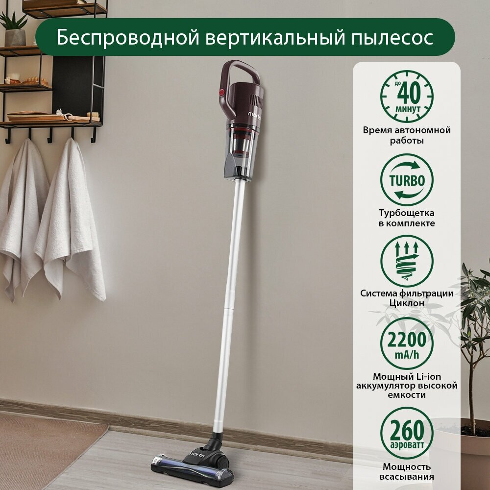 Cleaning type: dry, power supply: battery, battery life: 40 min, battery type included: Li-Ion, detachable hand vacuum cleaner, accessories: upholstery nozzle, turbo brush, crevice nozzle,