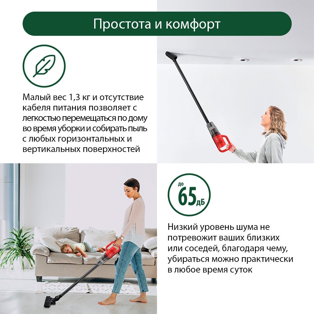 Cleaning type: dry, power supply: battery, battery life: 40 min, battery type included: Li-Ion, detachable hand vacuum cleaner, accessories: upholstery nozzle, crevice nozzle, features