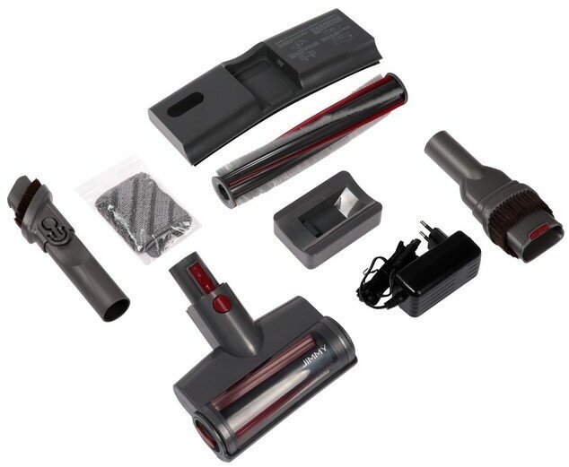 Complete set: vacuum cleaner, main turbo brush, small turbo brush, two slot diffusers, power adapter, wall mount, user manual