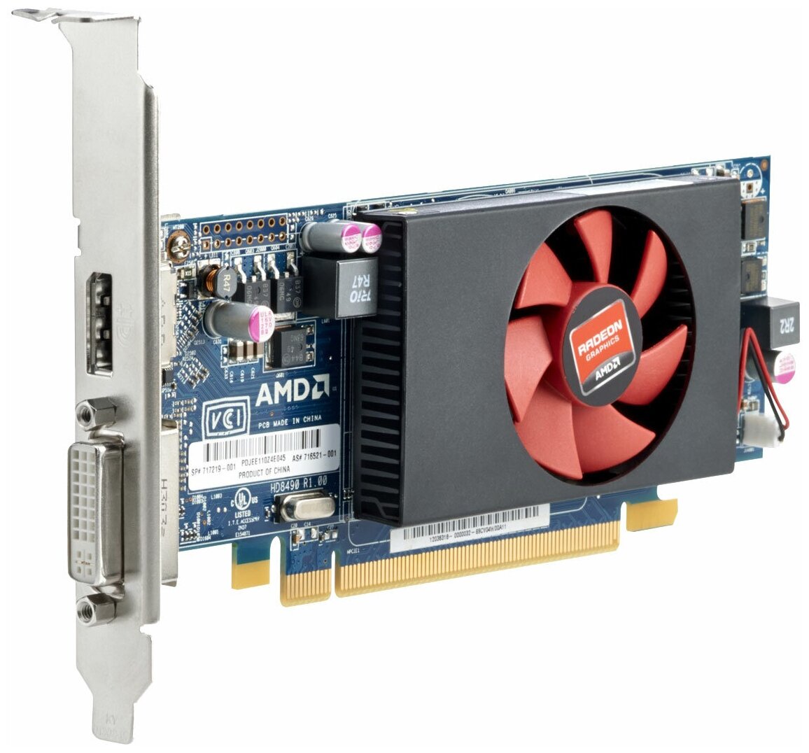 Graphics card name: AMD Radeon HD 8490, video memory size: less than 2 GB, graphics card manufacturer: AMD, product line: Radeon, memory type: GDDR3, memory bus width: 64 bit, PCI Express version: 2.0, DisplayPort output