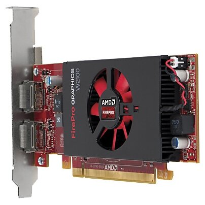 Graphics card name: AMD FirePro W2100, video memory size: 2 GB, graphics card manufacturer: AMD, product line: FirePro, memory type: GDDR3, memory bus width: 128 bit, PCI Express version: 3.0, DisplayPort output