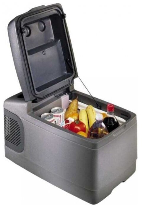 Type: container, principle of operation: compressor, power supply: from the cigarette lighter, voltage: 12 V, 24 V, volume: 26 l, features: interior lighting, height: 38 cm, width: 34.50 cm, depth: 58 cm, additional modes: freezing