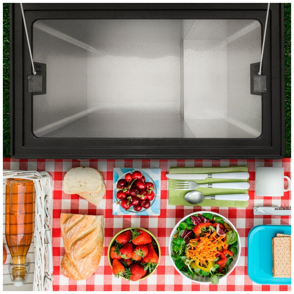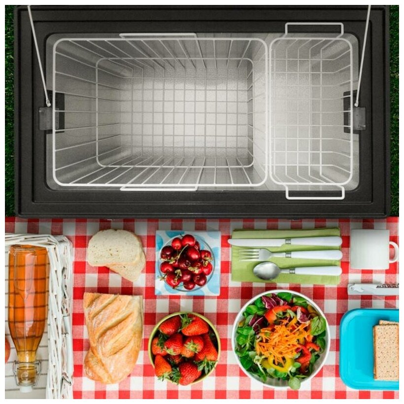 Type: chest, principle of operation: compressor, power supply: from the cigarette lighter, voltage: 12 V, 24 V, volume: 130 l, features: interior lighting, carrying handles, material: metal, height: 74 cm, width: 82 cm, depth: 49 cm, additional