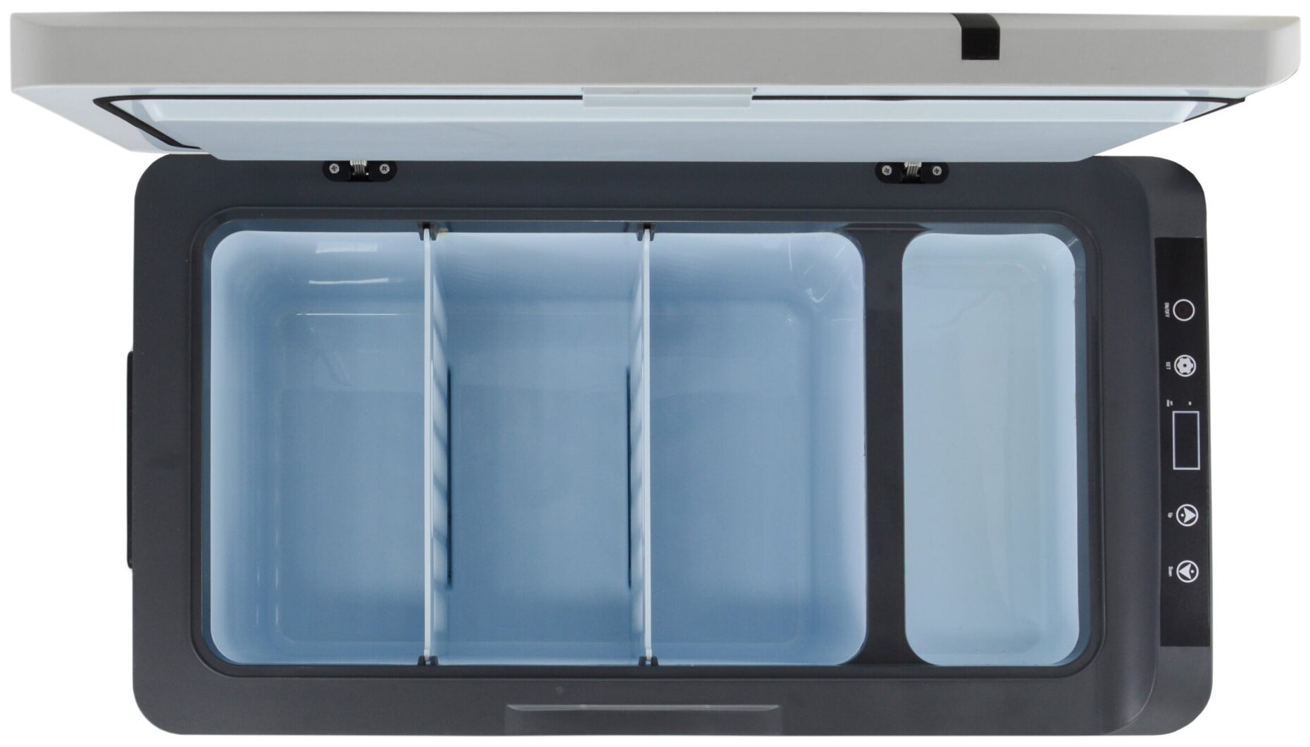 Type: chest, principle of operation: compressor, power supply: from the cigarette lighter, voltage: 12 V, 24 V, volume: 23 l, features: carrying handles, material: metal, plastic, height: 38.50 cm, width: 65.50 cm, depth : 41.50 cm, extra R