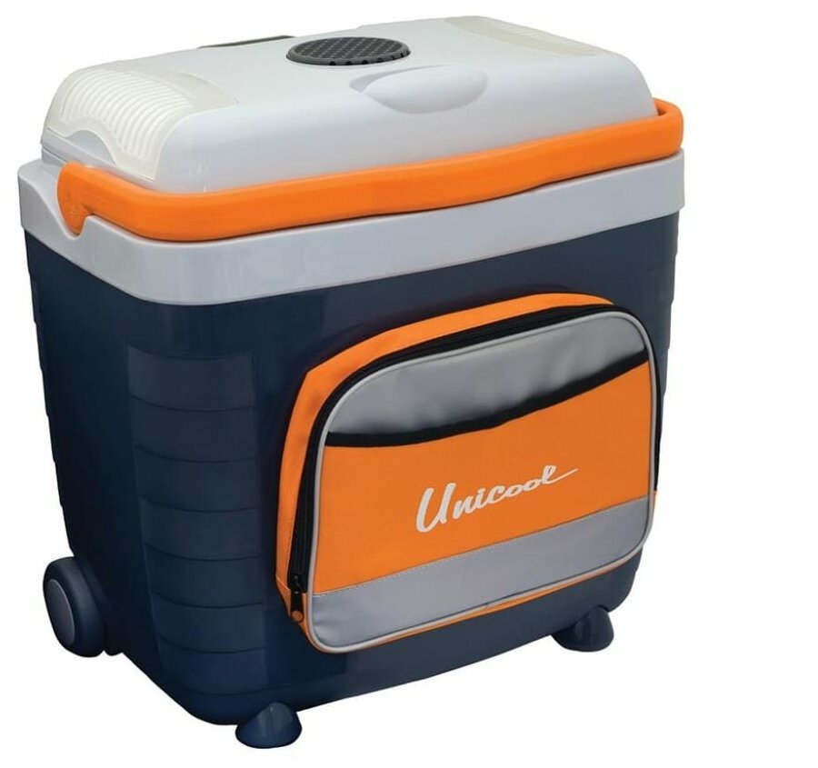 Type: container, principle of operation: thermoelectric, power supply: from the cigarette lighter, voltage: 12 V, volume: 28 l, features: wheels for transportation, storage compartment for the power cord, carrying handles, material: plastic
