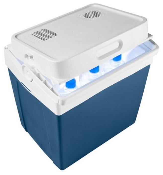 Type: container, principle of operation: thermoelectric, power supply: from the cigarette lighter, from the mains, voltage: 12 V, 220 V, volume: 30 l, features: carrying handles, height: 44.50 cm, width: 29.60 cm, depth: 39.60 cm