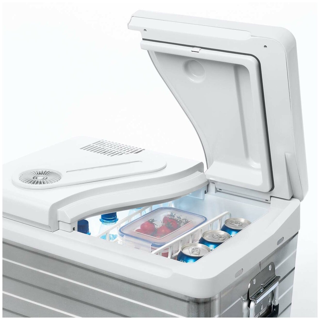 Type: container, principle of operation: thermoelectric, power supply: from the cigarette lighter, from the mains, voltage: 12 V, 220 V, volume: 39 l, features: storage compartment for the power cord, carrying handles, material: metal, height: 44 cm , shi