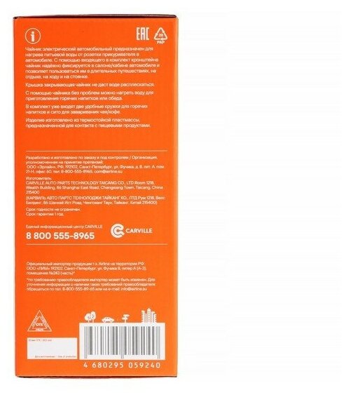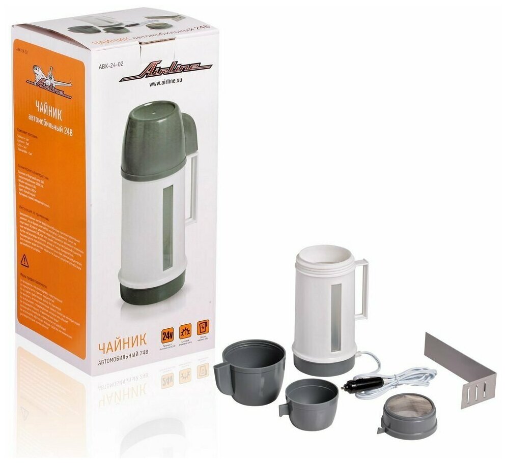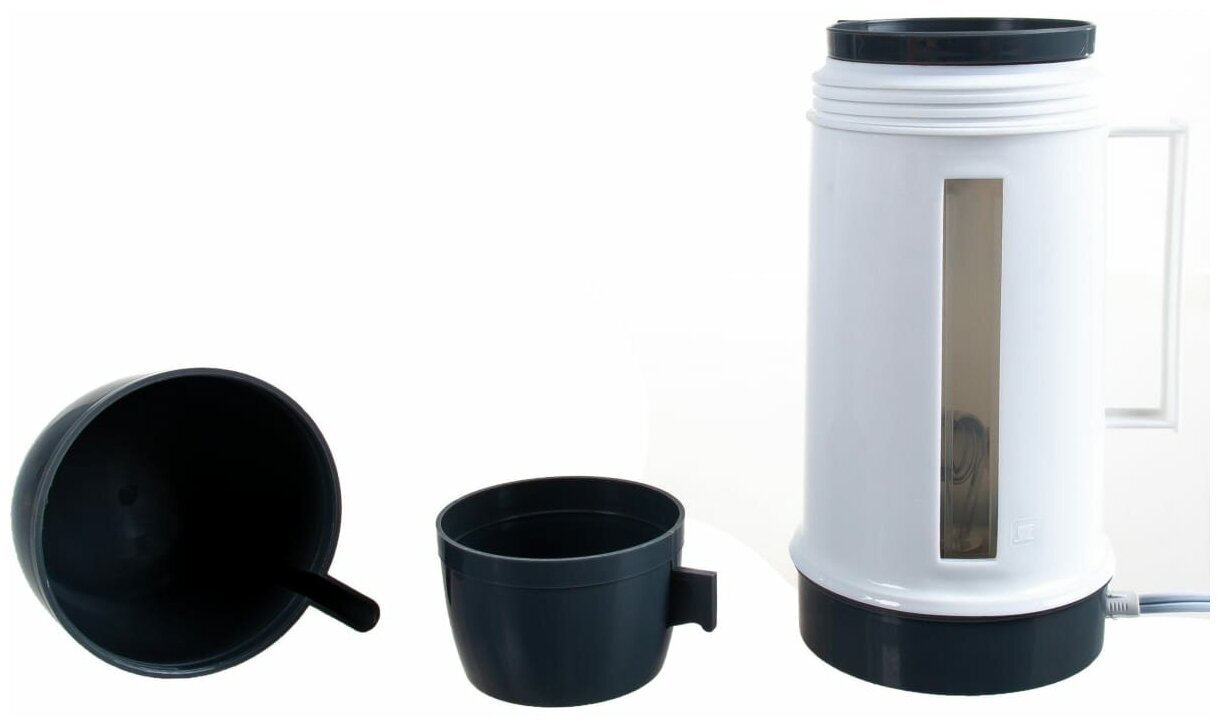 Type: kettle, functions: boiling, keeping warm, heating, volume: 0.60 l, power: 120 W, voltage: 24 V, material: plastic, set includes: mug, strainer