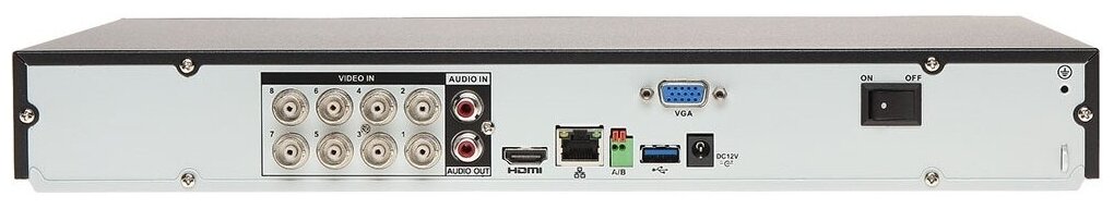 Type: HDVR hybrid, recording type: digital, max. number of video inputs: 8, with video motion detection, number of hard drive bays: 2, number of LAN ports: 1