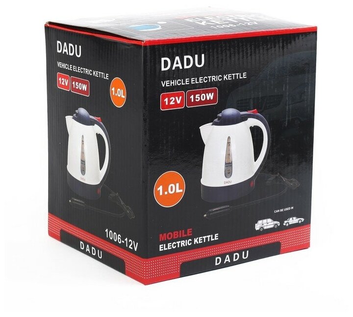 Type: teapot, functions: boiling, temperature maintenance, heating, volume: 1 l, power: 150 W, voltage: 12 V, material: metal, plastic, additional functions: Yes, features: light indication, set: Kettle