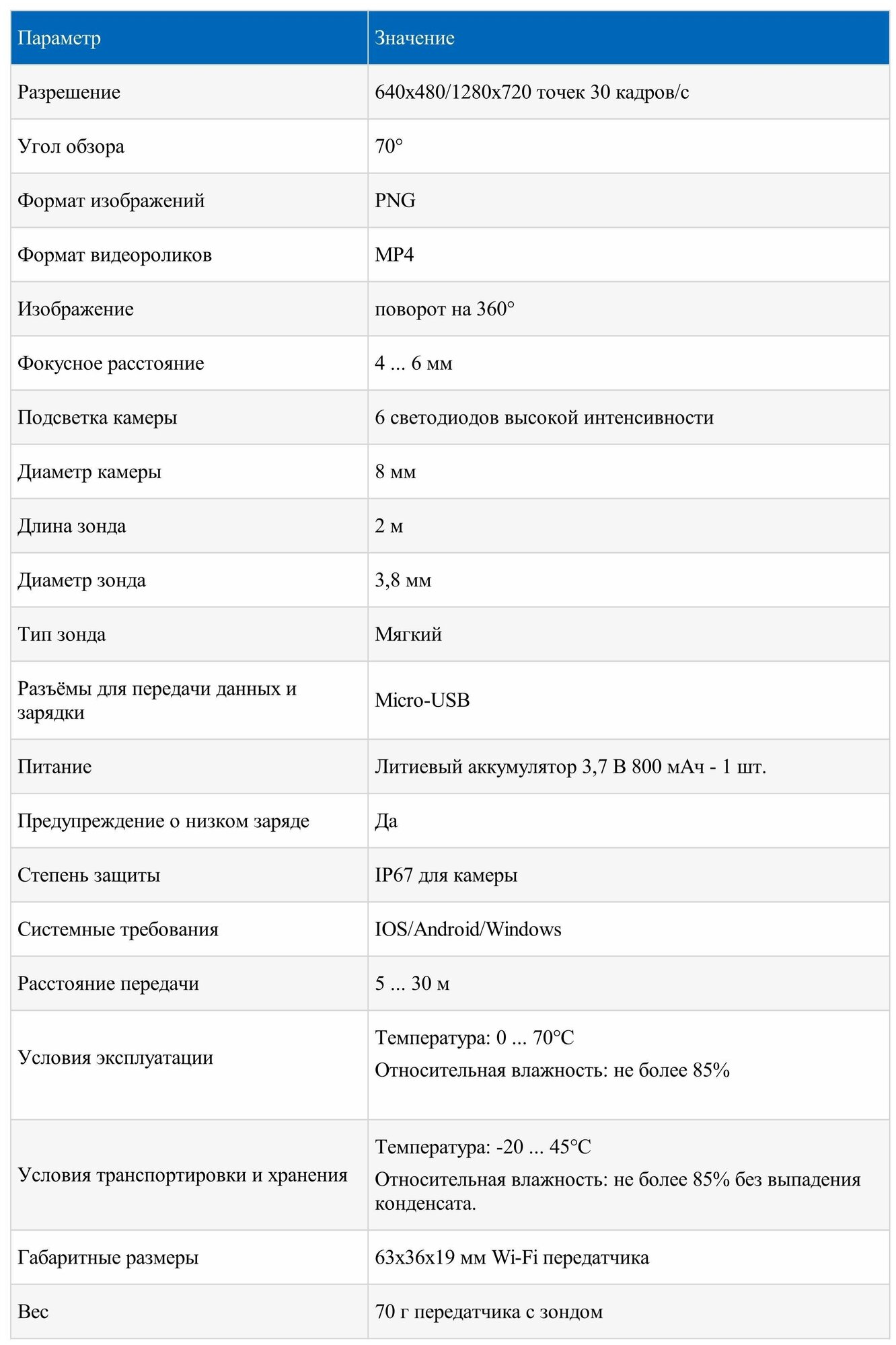 Type of videoscope: Illuminated video endoscope probe for car service, viewing angle: 70°, camera diameter: 8mm, protection class: IP67