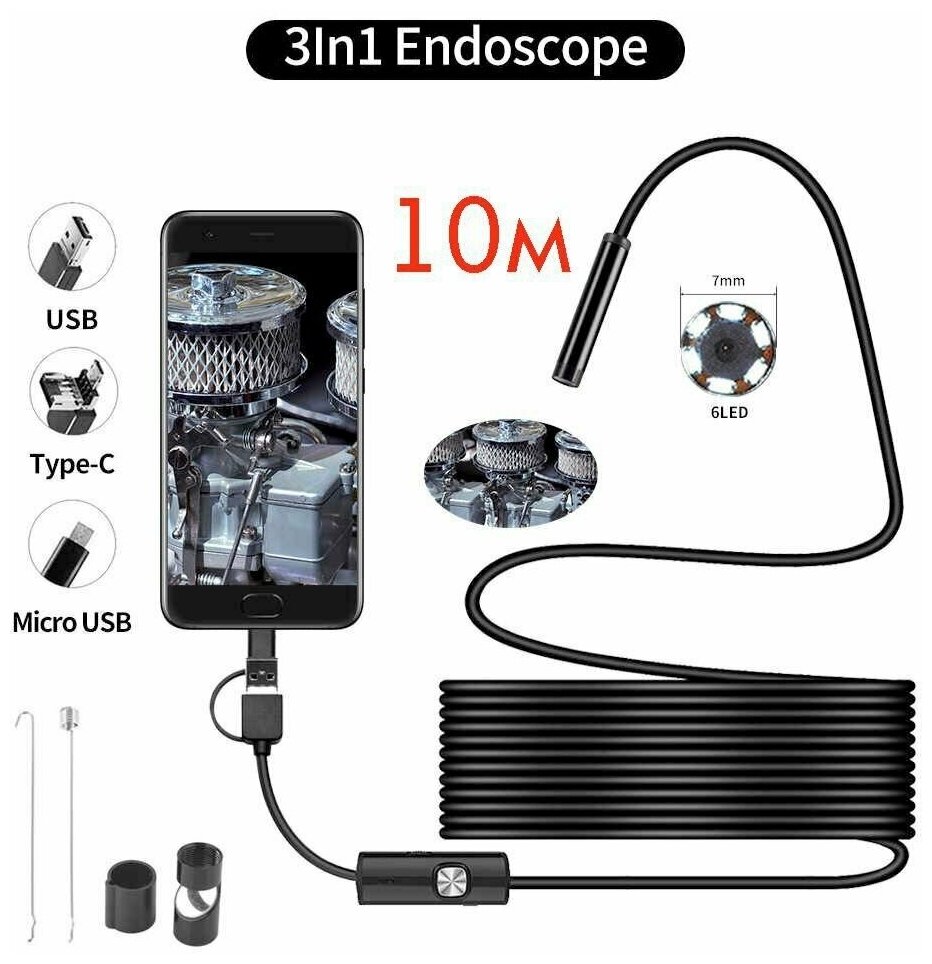 Video endoscope - 1 piece; nozzle hook - 1 pc; nozzle magnet - 1 pc; nozzle mirror - 1 pc.