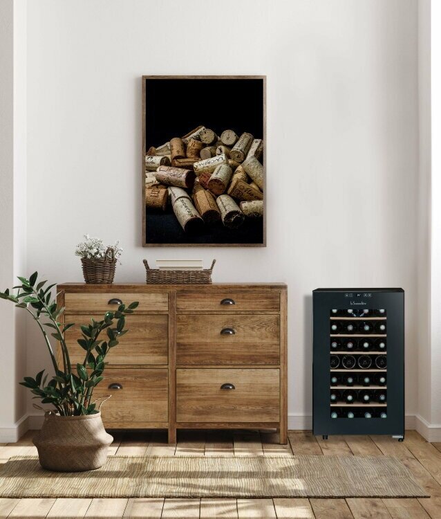 Wine cabinet type: single temperature, height: 74 cm, width: 43 cm, depth: 48.50 cm, number of chambers: 1, energy efficiency class: C, compressor type: standard, housing color: black