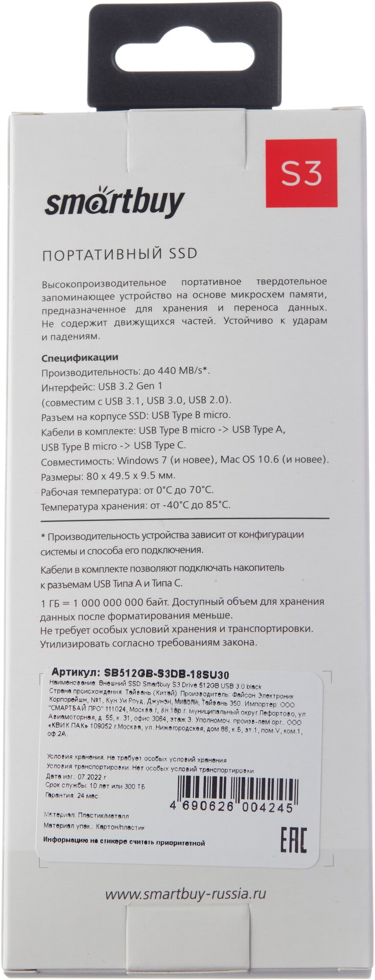 External SSD Smartbuy S3 Drive 128GB USB 3.0 black+sliver