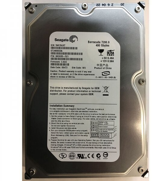 Capacity: 400 GB, form factor: 3.5, purpose: desktop, type: HDD, rotation speed: 7200 rpm, interfaces: IDE