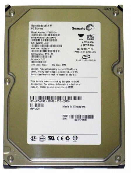 Capacity: 60 GB, form factor: 3.5, purpose: desktop, type: HDD, rotation speed: 7200 rpm, interfaces: IDE
