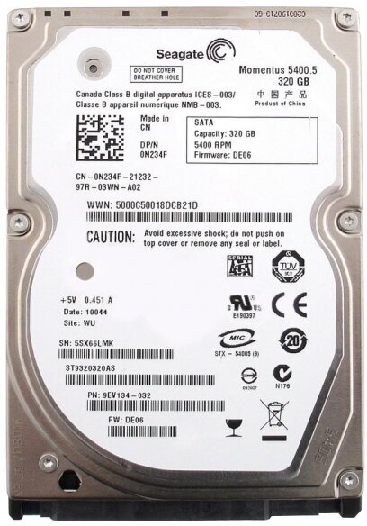 Capacity: 320 GB, form factor: 2.5, purpose: laptop, type: HDD, rotation speed: 5400 rpm, interfaces: SATA 3Gb/s, features: NCQ