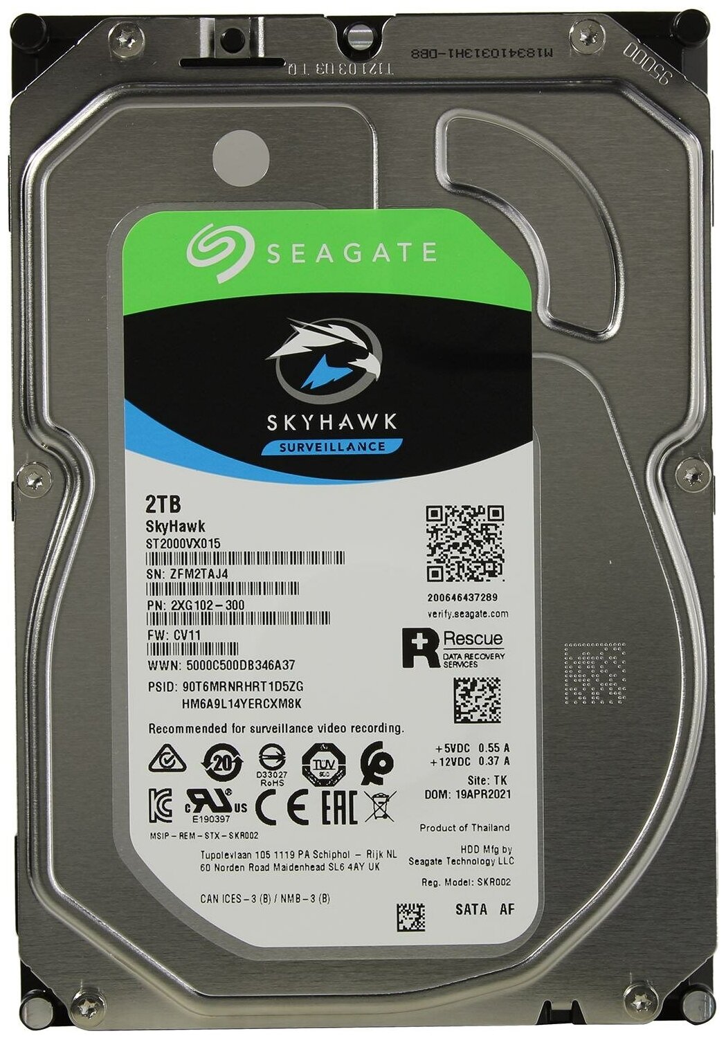 Capacity: 2000 GB, form factor: 3.5, purpose: for video surveillance systems, type: HDD, rotation speed: 5400 rpm, interfaces: SATA 6Gb/s