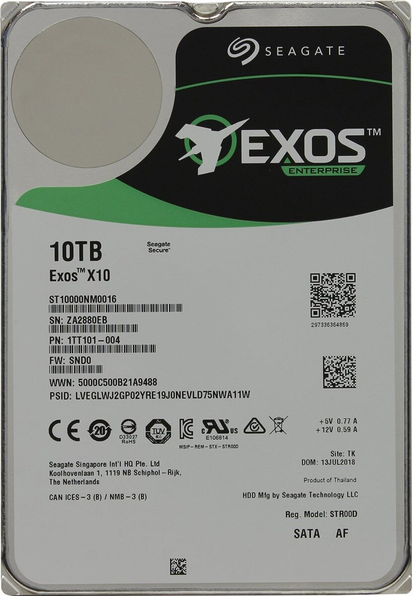 Capacity: 10000 GB, form factor: 3.5, purpose: server, type: HDD, rotation speed: 7200 rpm, interfaces: SATA 6Gb/s, features: NCQ, 4 KB sector support