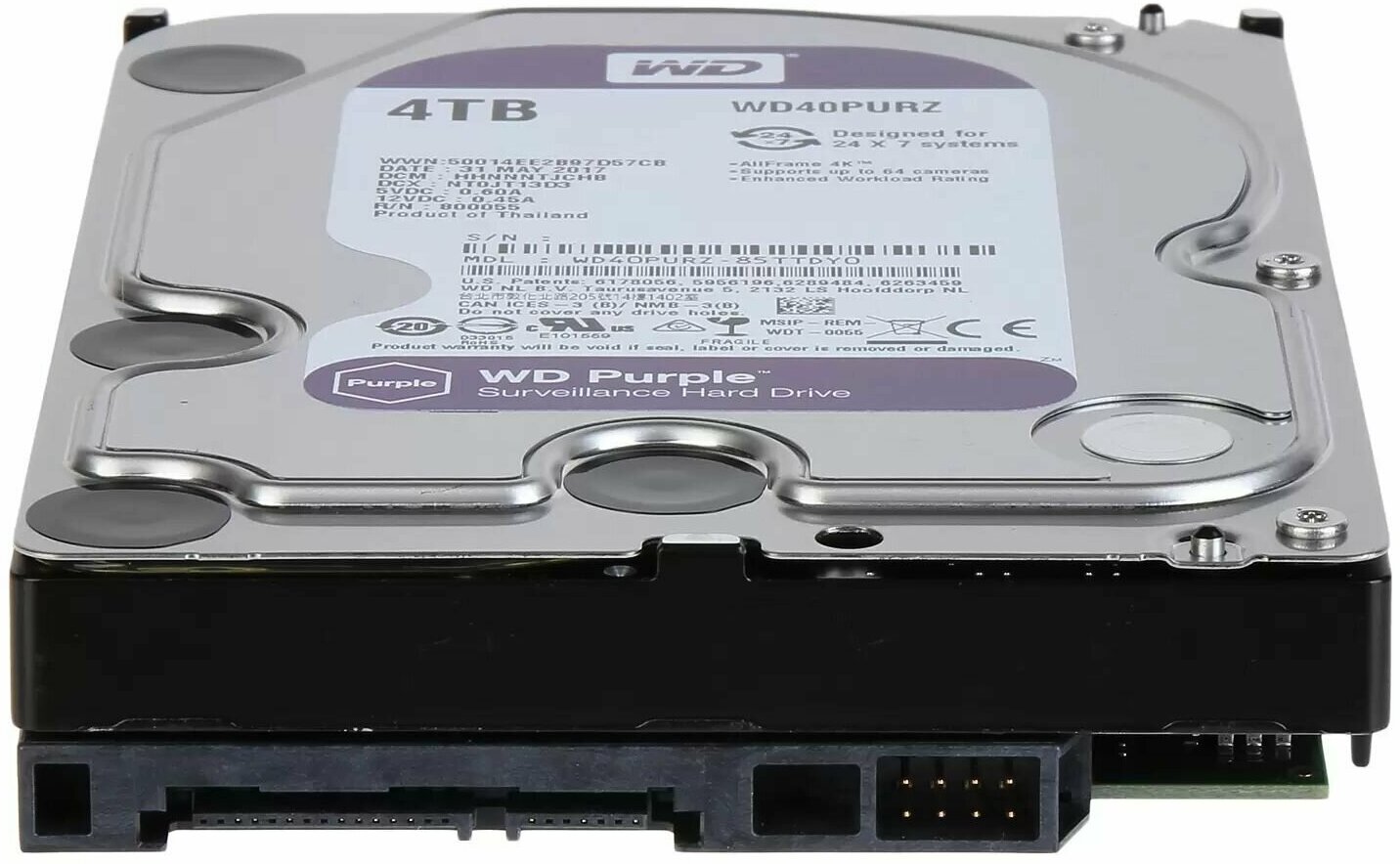 Capacity: 4000 GB, form factor: 3.5", purpose: for video surveillance systems, type: HDD, rotation speed: 5400 rpm, interfaces: SATA 6Gb/s, features: support for 4 KB sectors