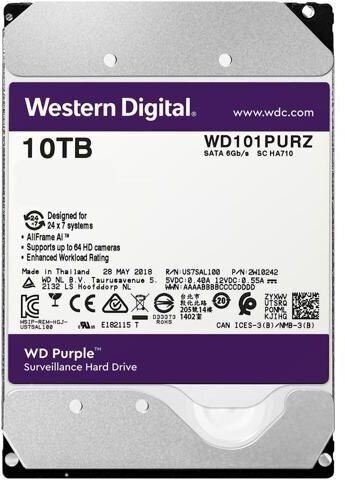 Capacity: 10240 GB, form factor: 3.5, purpose: for video surveillance systems, type: HDD, rotation speed: 7200 rpm, interfaces: SATA 3Gb/s
