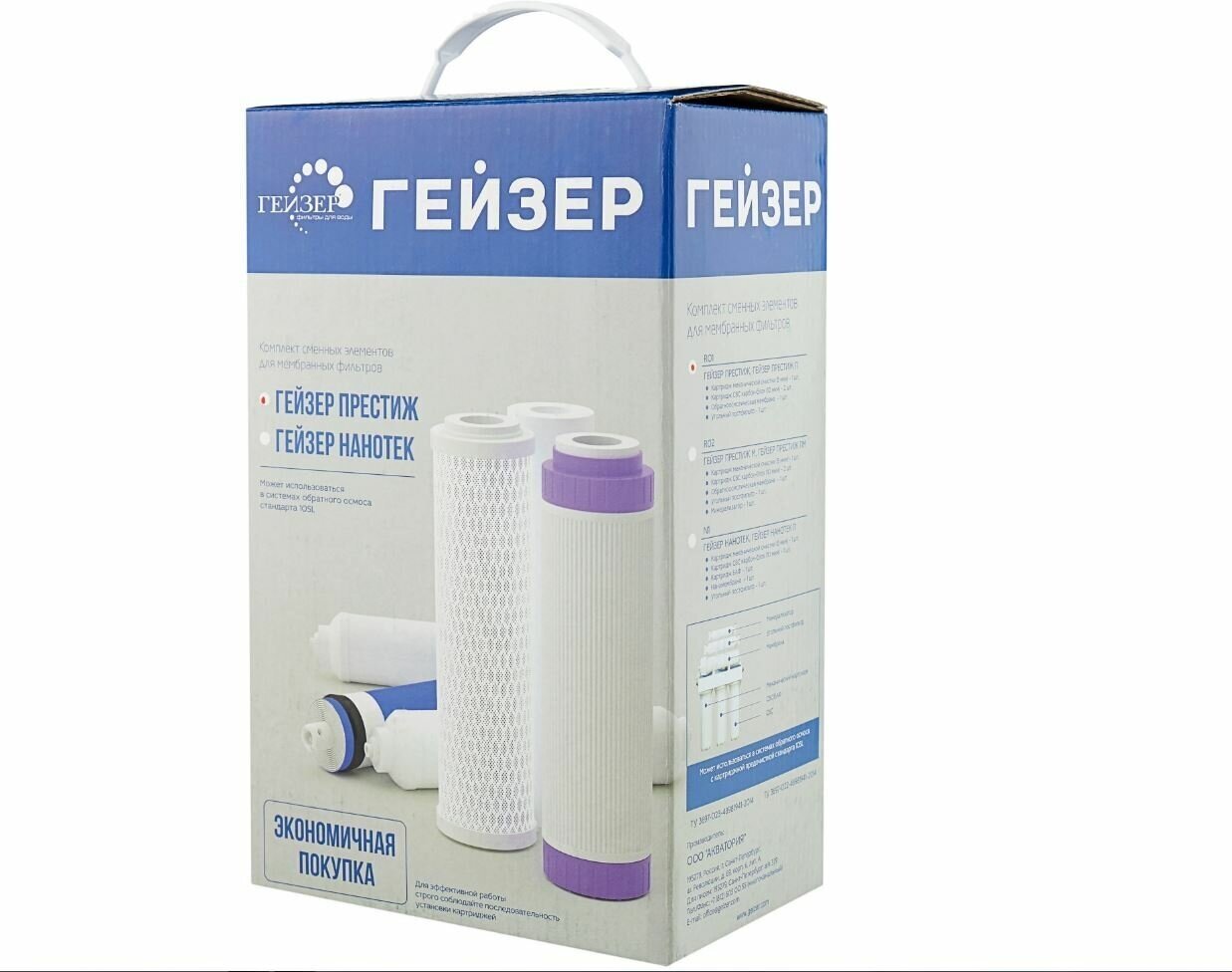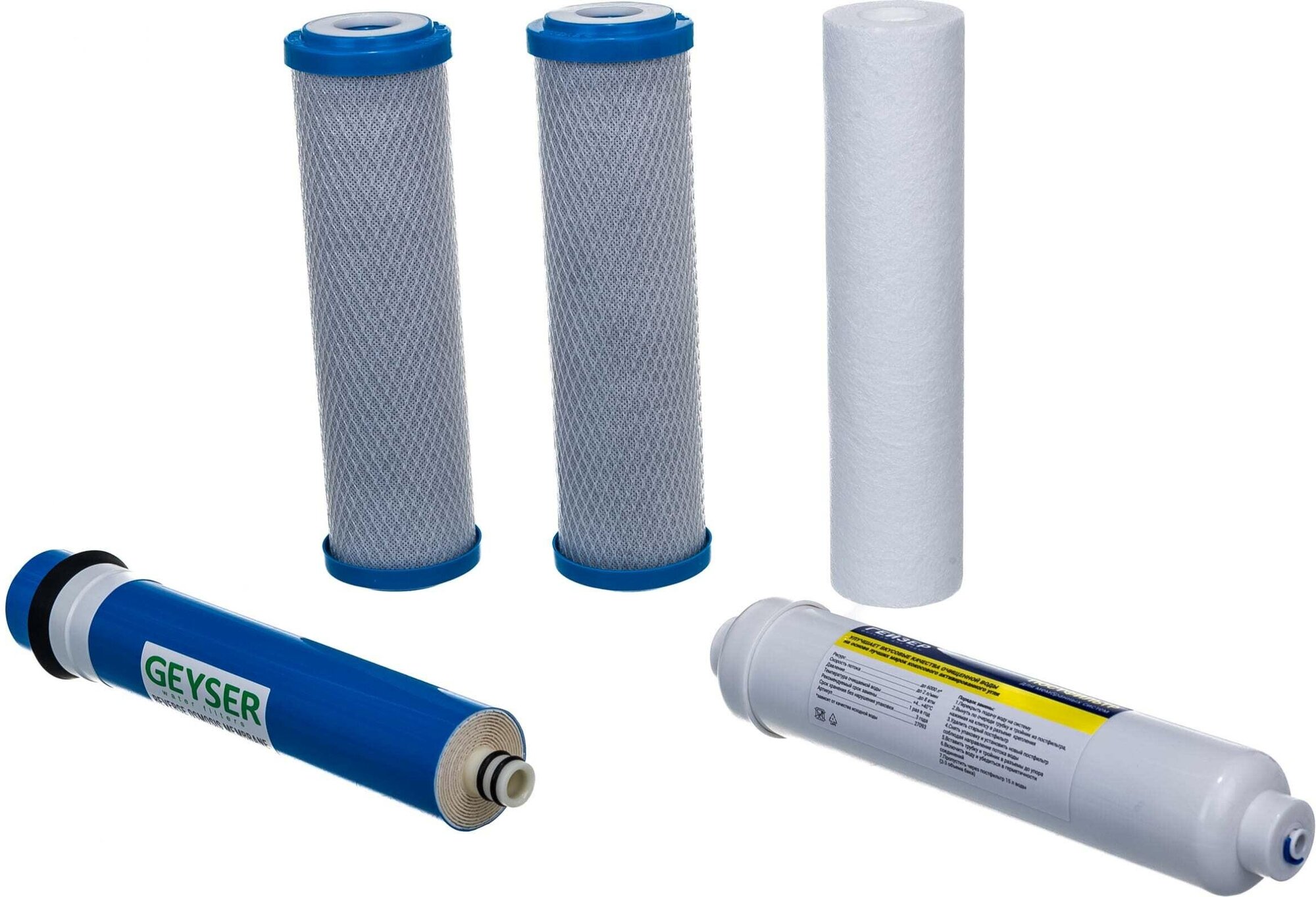 A set of replacement cartridges with a membrane for Geyser Prestige and Allegro; not supplied with fittings; equipment: PP 5 - 10SL, 2 carbon cartridges CBC 10 - 10S, reverse osmosis membrane, carbon post-filter