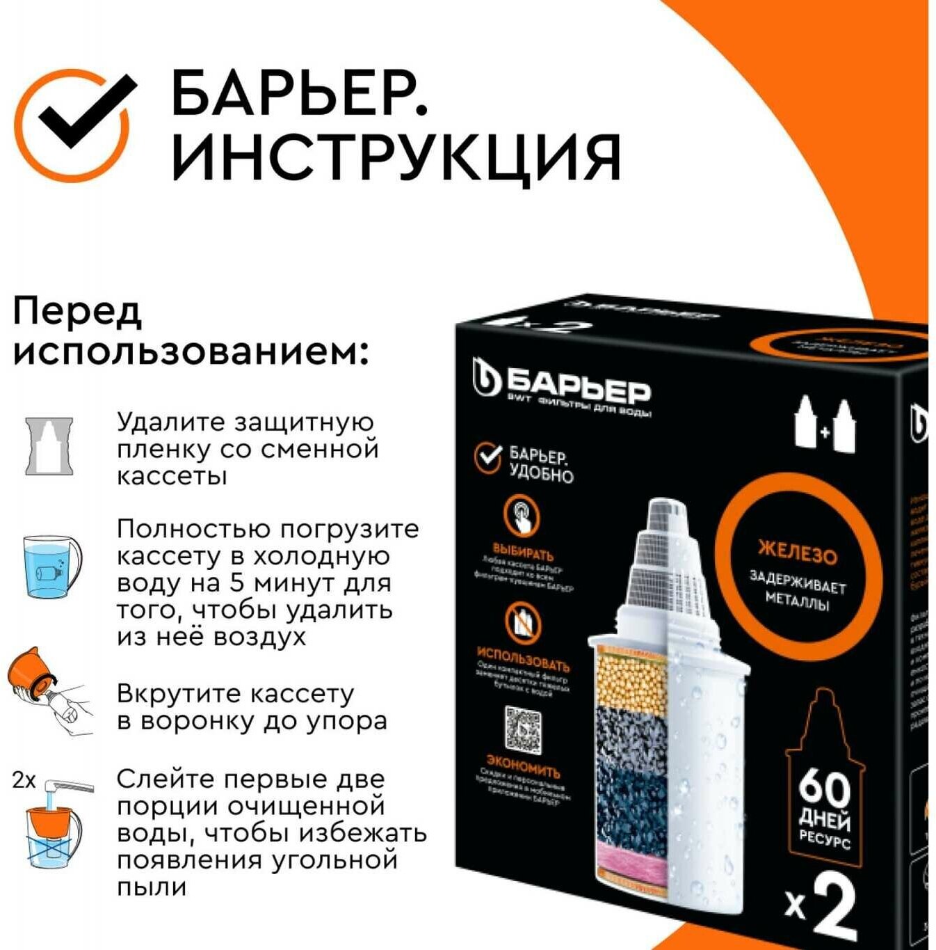 Type: cartridge, filter type: jug, capacity: 4 l/min, iron removal, activated carbon, filter element life: 350 l, maximum operating temperature: 40 °C, height: 60 mm, length: 60 mm, width: 140 mm, weight