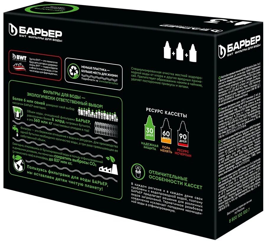 Type: cartridge, filter type: jug, capacity: 4 l/min, for hard water, iron removal, activated carbon, filter element resource: 350 l, maximum operating temperature: 40 °C, height: 60 mm, length: 60 mm