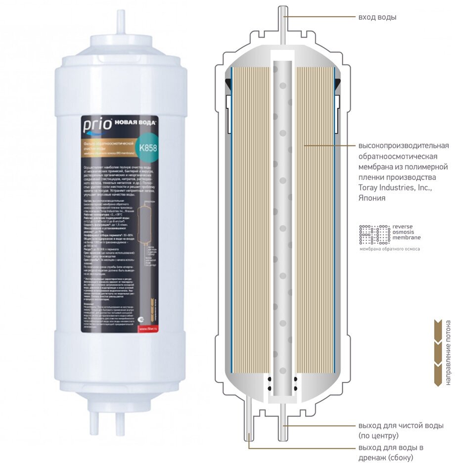 Type: membrane, filter type: "under the sink" system, body size: quick-detachable, capacity: 1.50 l/min, for hard water, iron removal, mechanical filtration, filter element life: 50000 l, return flow