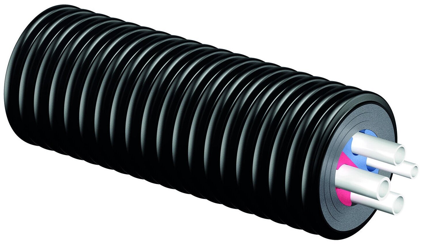 Outer diameter of the protective casing 200 mm; four bearing pipes 2x25x2.3; 2x25x3.5; operating parameters: for heating 6 bar / 95°C, for hot water 10 bar / 95°C; multilayer thermal insulation made of foamed cross-linked polyethylene