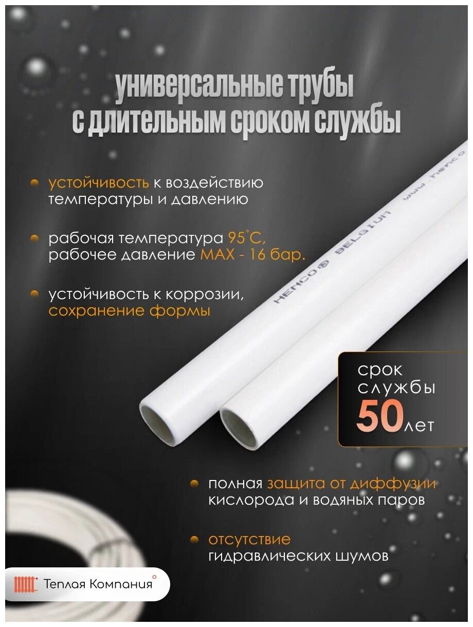 Pipe type: smooth, scope: water supply, heating, type of water supply: hot, hot/cold, drinking water, technical, cold, pipe material: metal-plastic, maximum pressure, bar: PN 10, tempera