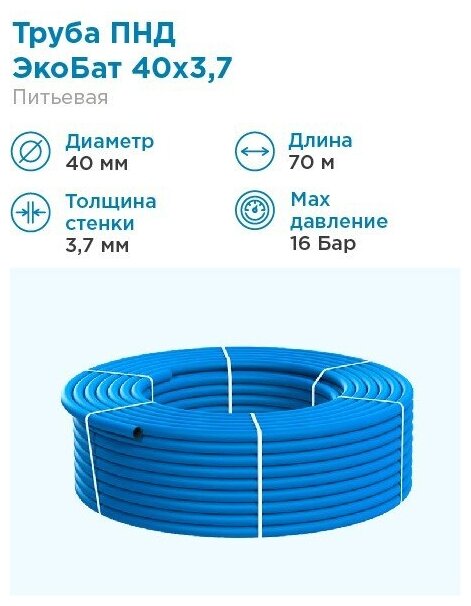 Pipe type: smooth, scope: water supply, water supply type: hot/cold, drinking water, technical, cold, pipe material: HDPE, maximum pressure, bar: PN 16, maximum temperature: 40 °C