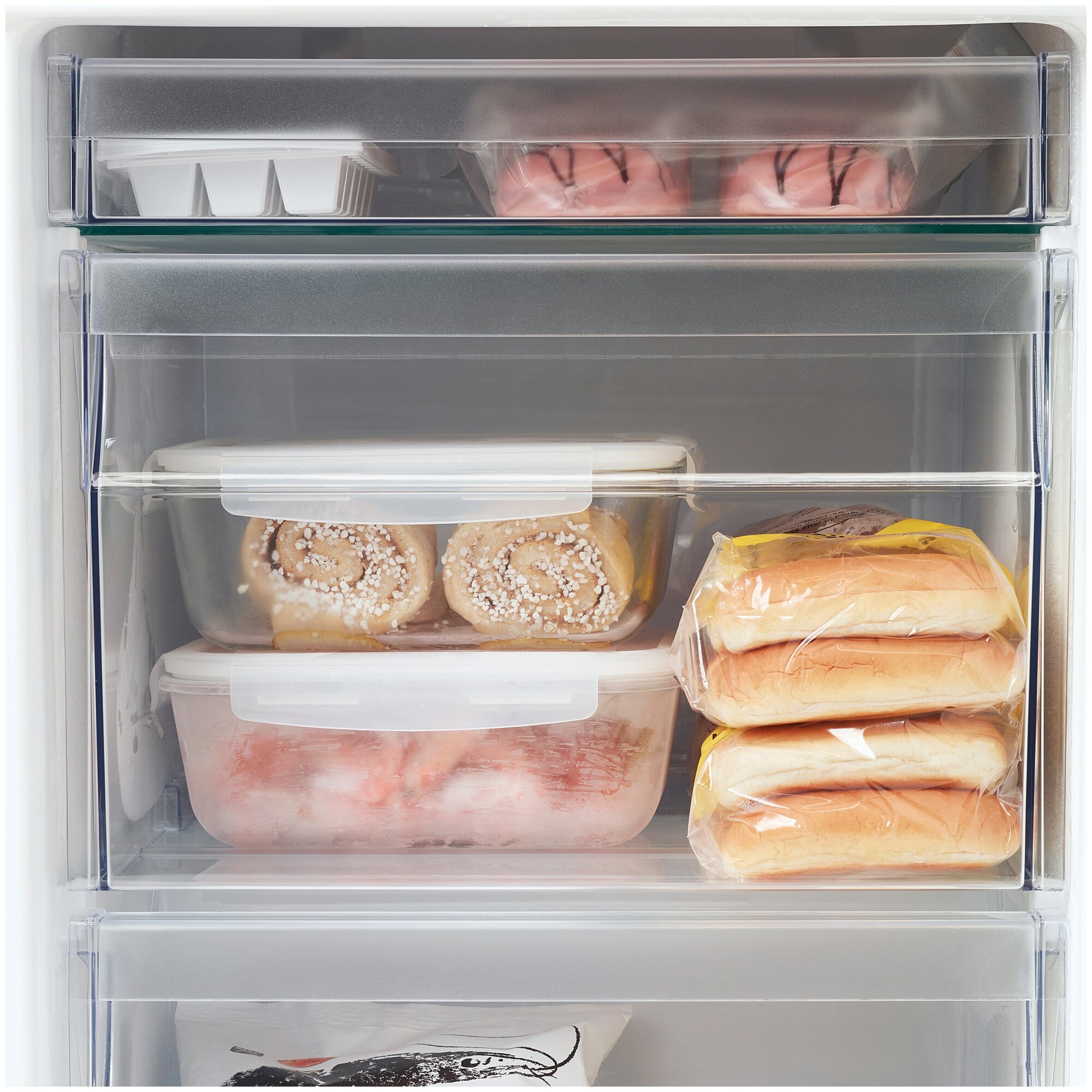 Included: 3 removable shelves, bottle rack, container, egg tray holds 6 eggs, 3 freezer drawers, ice tray,