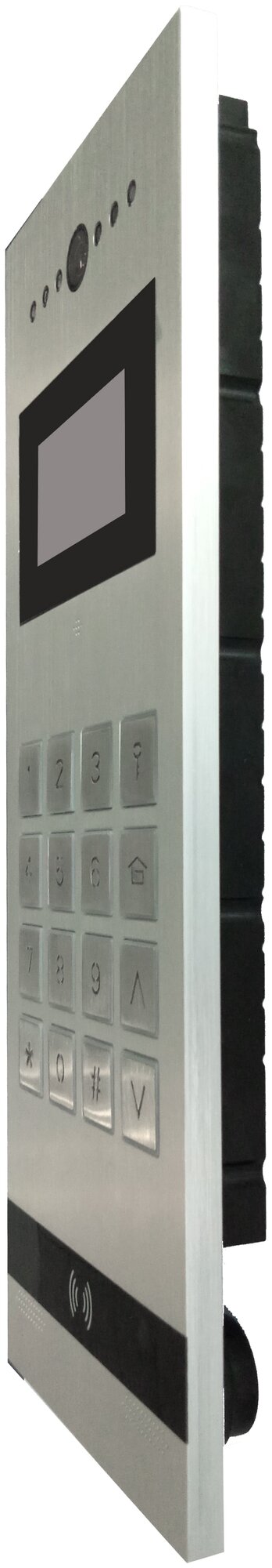 Type: calling panel on the door, case material: aluminum, model/version: video camera/microphone, height: 370 mm, width: 140 mm, depth: 30 mm, technology/installation method: multi-wire, color: silver, quantity