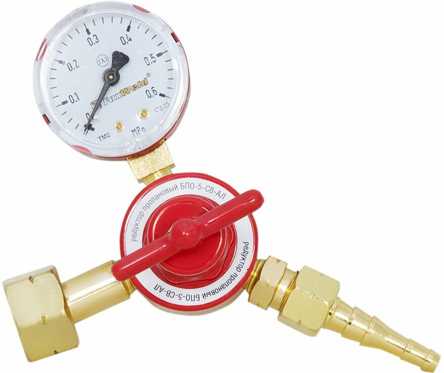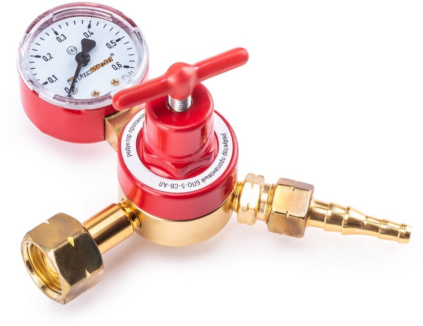 Type: reducer, type of gas: propane, maximum throughput: 5 m³/h, features: pressure gauge, safety valve, with union nut, installation location: cylinder, minimum outlet pressure: 0.01 MPa, maximum