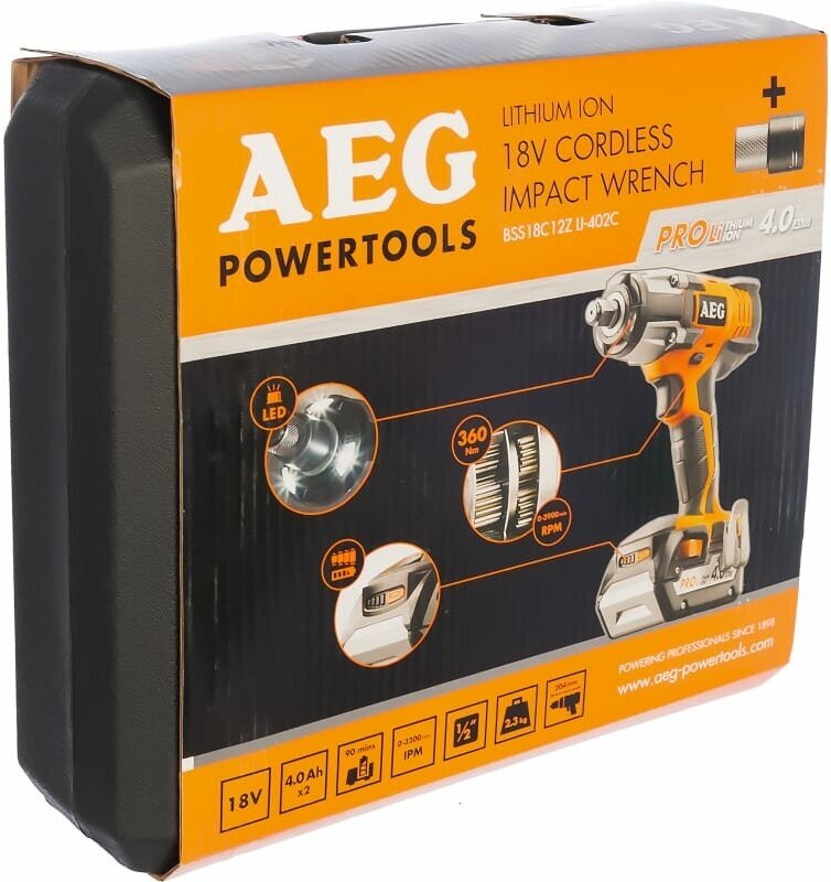 Impact: impact, chuck type: 1/2" square, maximum torque: 360 Nm, power supply: battery, functions: reverse, speed control, design features: power button lock, lamp