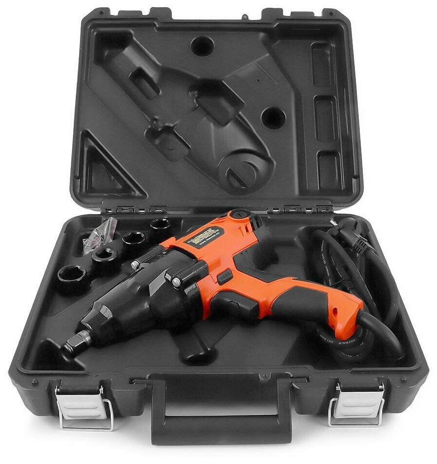 Impact: impact, chuck type: 1/2" square, maximum torque: 350 Nm, power supply: from the mains, power consumption: 900 W, functions: reverse, speed control, design features: Case included