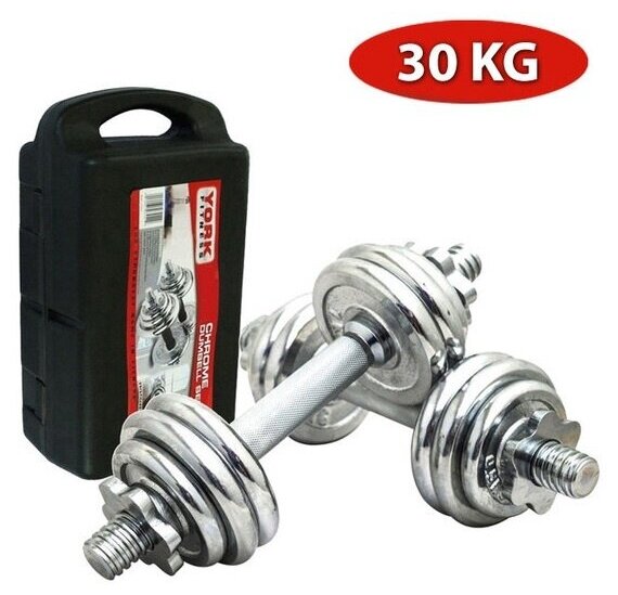 Dumbbells York Dumbbell set in case York B25617, 30 kg chrome