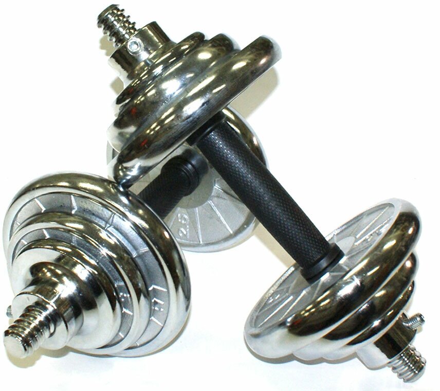Type: dumbbell set, design: collapsible, neck lock: nut, handle coating: chrome