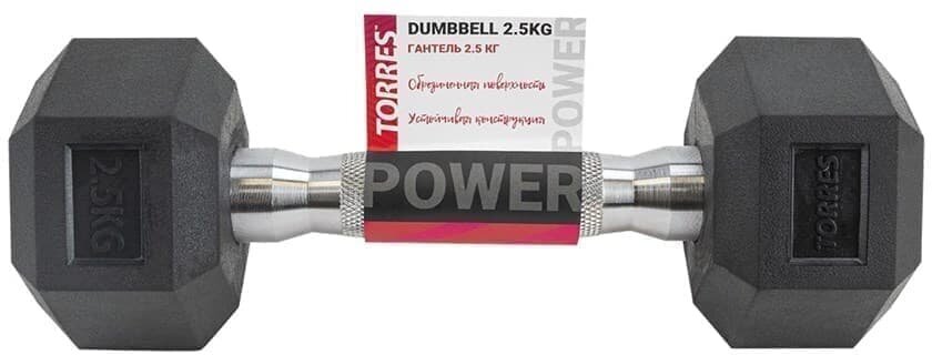 Dumbbell TORRES 2.5 kg art. PL519025, rubber coated metal, hex shape, black