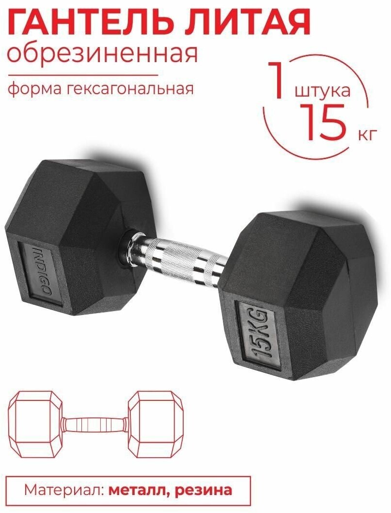 Cast rubberized dumbbell INDIGO IN124 15 kg Black