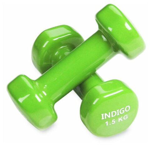 Dumbbells INDIGO Ind-15, 2 pcs. 1.5 kg each, light green color