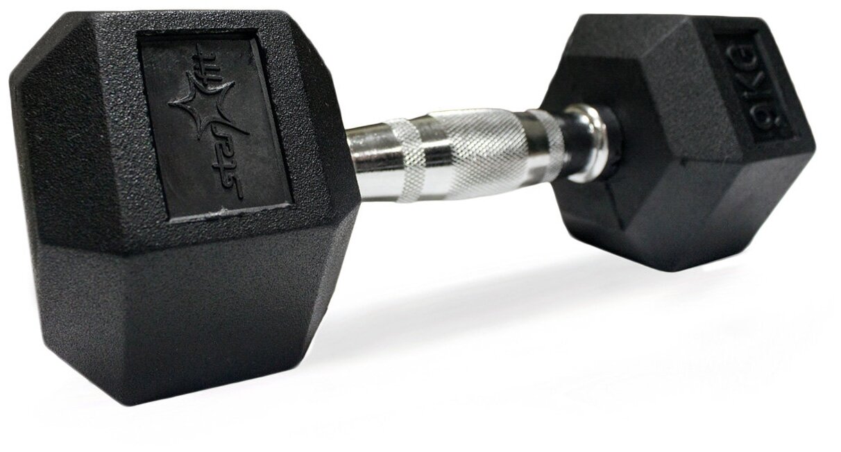 Type: dumbbell, design: non-separable, dumbbell shape: hexagonal, features: elongated, disc coating: rubber