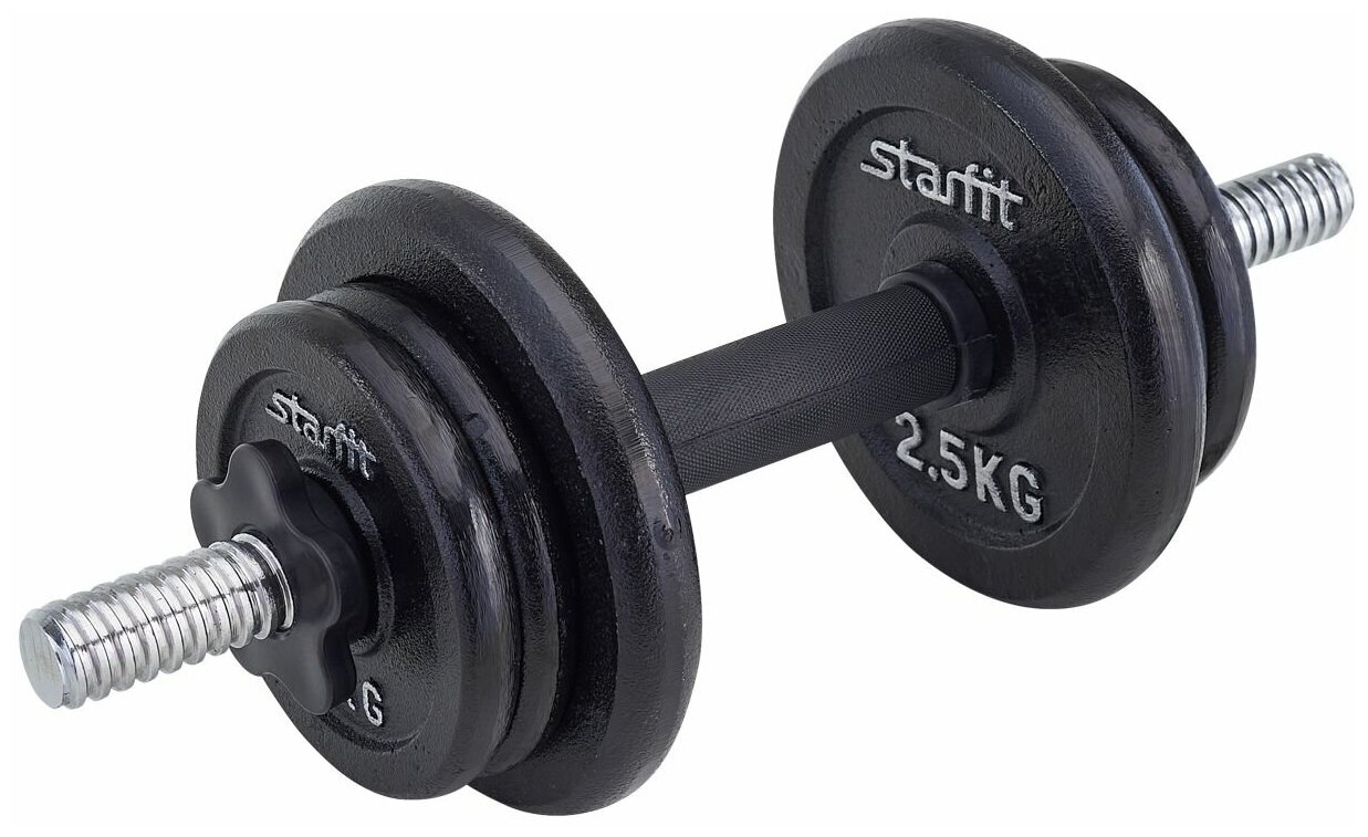 Type: dumbbell, design: collapsible, features: elongated, neck lock: nut, handle coating: rubber